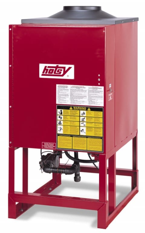 The 9400 Series heating modules give customers the flexibility to convert a cold water pressure washer into a hot water unit. By attaching the heating module to a cold water pressure washer the pressurized water is now heated to produce all the benefits of hot water cleaning. The four models use fuel oil, diesel or natural gas to heat the water using Hotsy's high-efficiency, vertical heating coil.